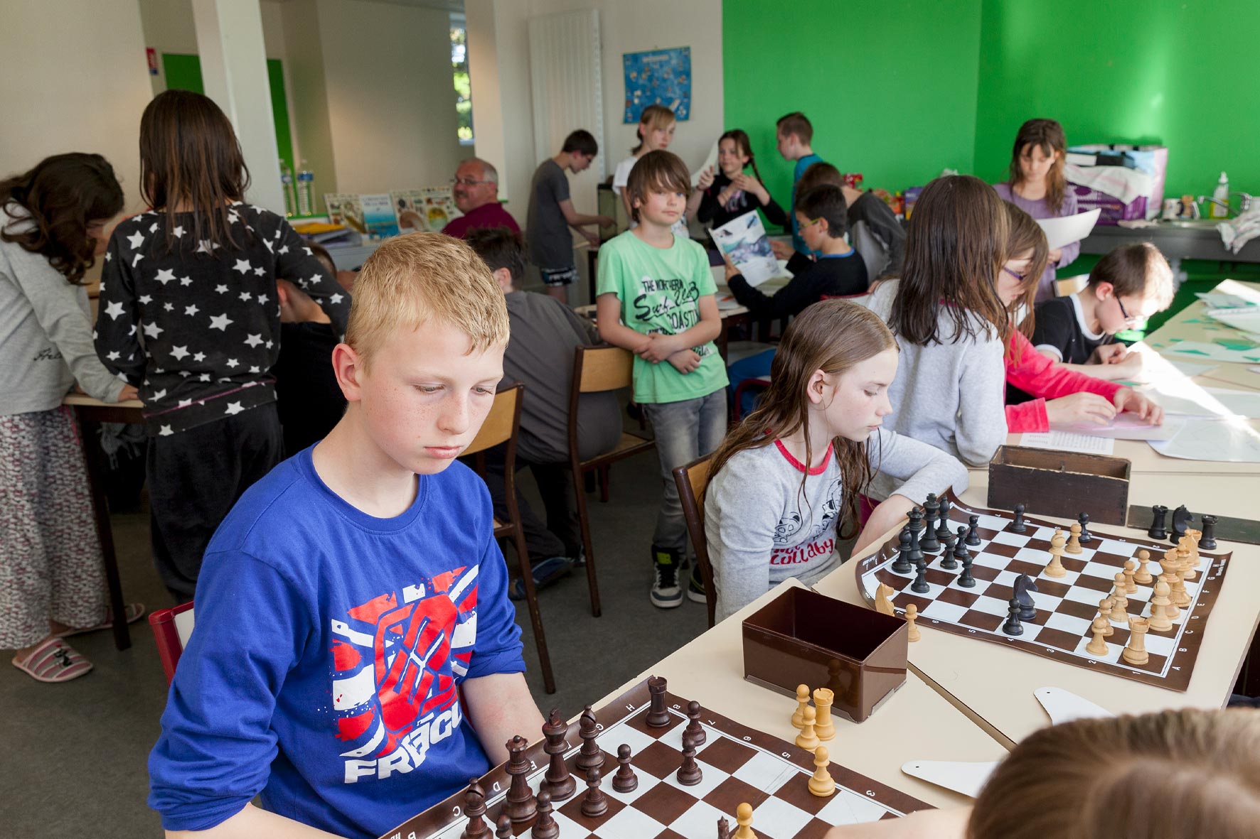 Au fil de la journée, ces salles deviennent des espaces d’activités et de travail, équipés selon les besoins des groupes.
